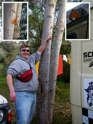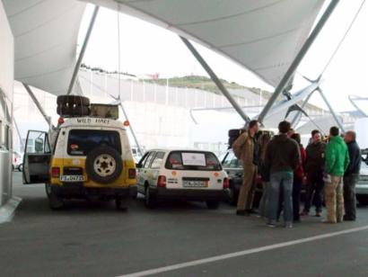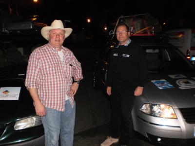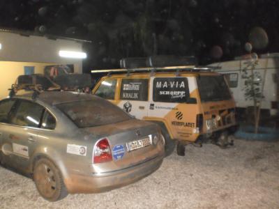 Das "Swat Rallye Team" bastelte den ganzen lieben Tag lang an ihrem Renault herum. Was mit einem defekten Ölfilter begonnen hatte, stellte sich gestern als ernsthaftes Problem heraus. Zwei Diagnosen waren im Umlauf: kapitaler Motorschaden oder Turbolader. Gott sei Dank scheint es "nur" der Turbolader zu sein. Diesem wurde kurzerhand das Öl abgestellt und nun schnurrt der Renault wieder. Allerdings mit geschätzten 65 PS statt der normalen 125 PS!