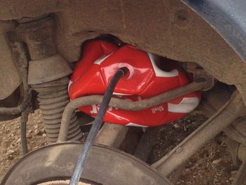 Ein schneller Blick unter das Auto ergab das es “nur” die Ölwanne des Automatikgetriebes war. Es gab schnell eine Idee wie das durch einen Stein entstandene Loch abgedichtet werden konnte und zum Glück fanden sich auch Besitzer von Getriebeöl unter den Rallyefahrern. Das Einfüllen des Öls war dann auch die größere Herausforderung, aber auch diese wurde gemeistert.