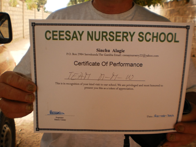 Natürlich übergaben auch wir Schreibwaren und Spielsachen für die Kinder. Als Dank dafür erhielten wir eine Urkunde :-)