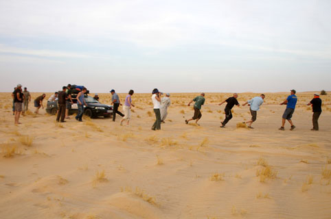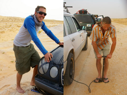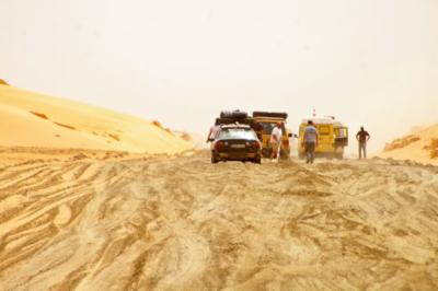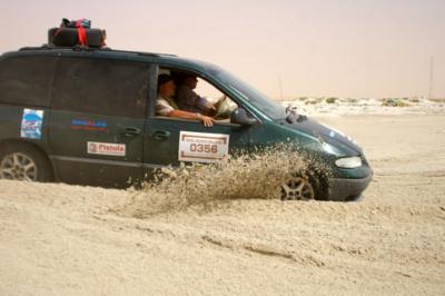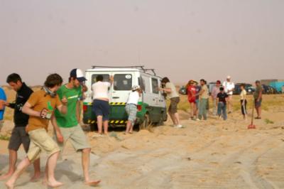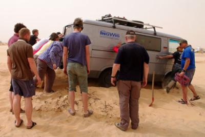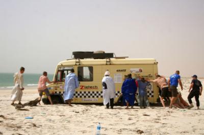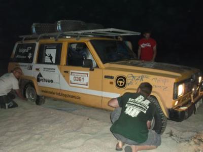 Von Reifenpannen und Einsandungen begleitet ging es weiter. Erst auf der Piste und dann auf dem Damm.