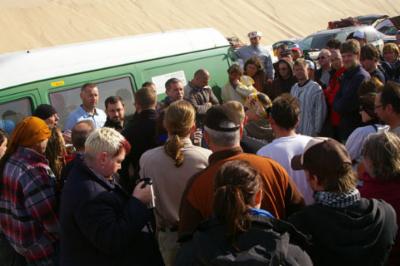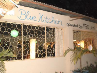 Auf der Fahrt zum Blue Kitchen gab es die erste Gelegenheit zum Informationsaustausch. Unter erschwerten Bedingungen. Denn das in Marokko (oder war es im Mauretanien?) geschweisste Flammrohr hatte sich erneut gelöst, dank der Rüttelpiste im Senegal. Also hatte der Passat den richtigen "Rallye-Sound". Seinen satten Klang verloren hatte hingegen der Voyager. Ganz still und leise hing er am Abschleppseil.