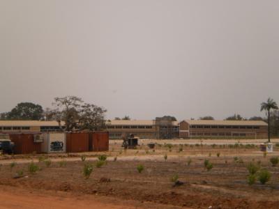 Auf dem Weg zum möglichen neuen Projekt folgten wir einer endlosen Straße, an der auch die einzige Universität des Landes liegt. Außerdem fiel auf, dass entlang dieser Straße eine Stromleitung verlief und stellenweise sogar Straßenbeleuchtung existierte!