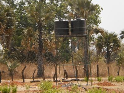 Danach ging es in einem uralten Golf zum Projekt. Hier wurden 4 Hektar Land gerodet und ein 60 Meter tiefer Brunnen gebohrt. Mit diesem Wasser wird ein 6000-Liter-Tank gefüllt und von dort das Wasser an 9 Zapfstellen verteilt. Somit ist keiner der geplanten Gemüsegärten weiter als 50 Meter von der nächsten Zapfstelle entfernt. Um die Betriebsausgaben zu minimieren, wird die benötigte Pumpe mit Solarstrom betrieben.