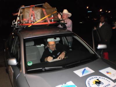 Nachdem alle Neuankömmlinge versorgt und erste Informationen ausgetauscht waren, stellt sich die Frage: wie kommt die Voyager-Besatzung jetzt in´s Hotel. Einfach umladen geht nicht, denn alle Autos sind bis zum Dach beladen.