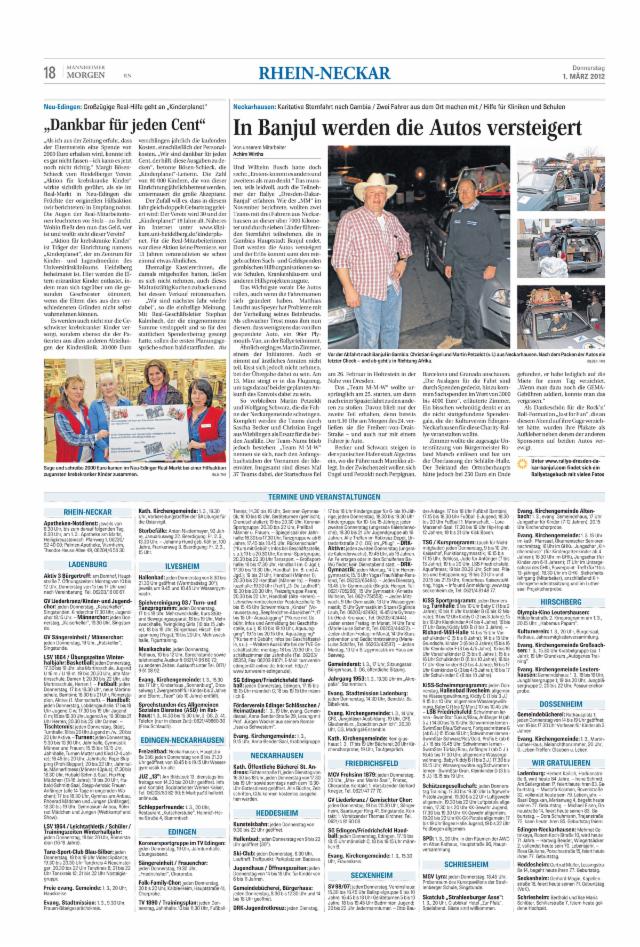 Auch die beiden großen Tageszeitungen aus Mannheim und Heidelberg werden über uns berichten. Die ersten Gespräche haben bereits stattgefunden.